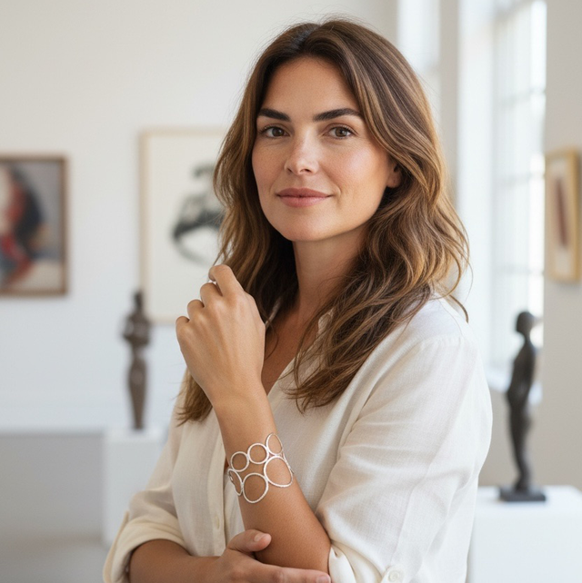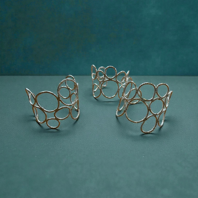 These abstract cuffs are all one of a kind and are adjustable to fit. The hammered bubble design gives a sparkling stunning finish to any outfit!