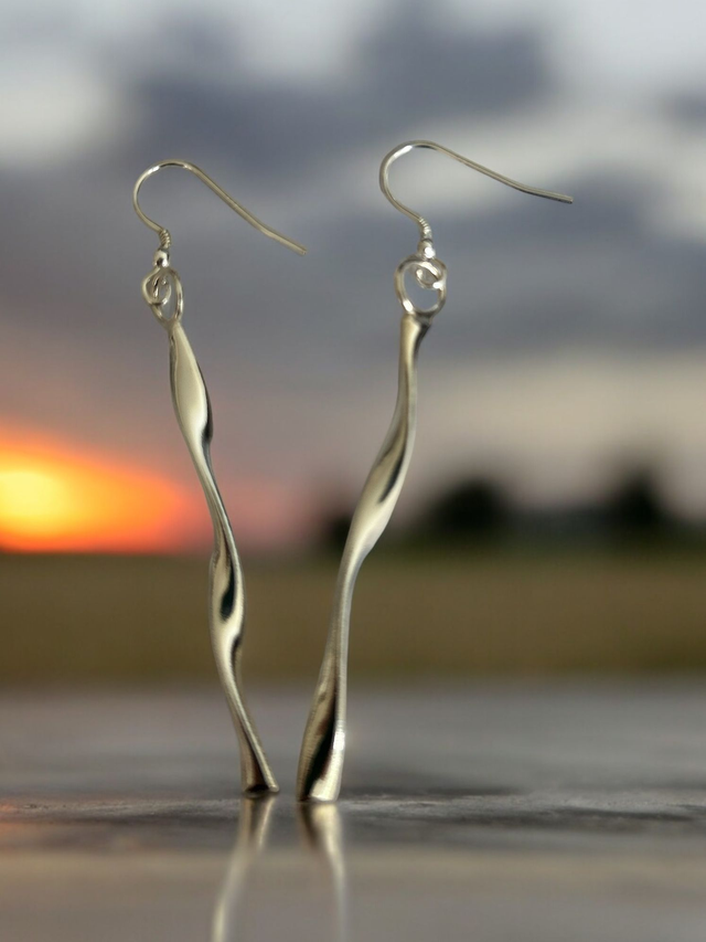 A pair of hand-twisted 925 silver earrings on fine silver hooks. This unique earrings will make you feel exquisite and will catch the light as you move. Matching pendant available.