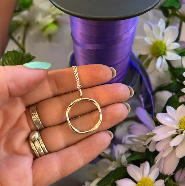 Handmade and hand twisted silver circle earrings on silver hooks.