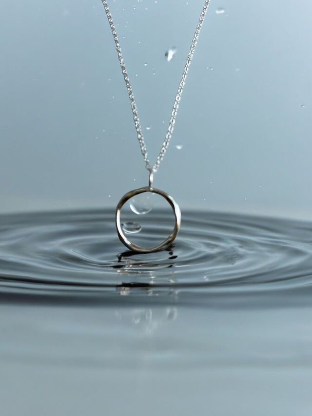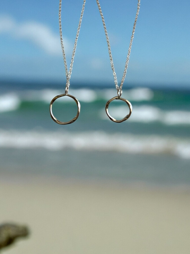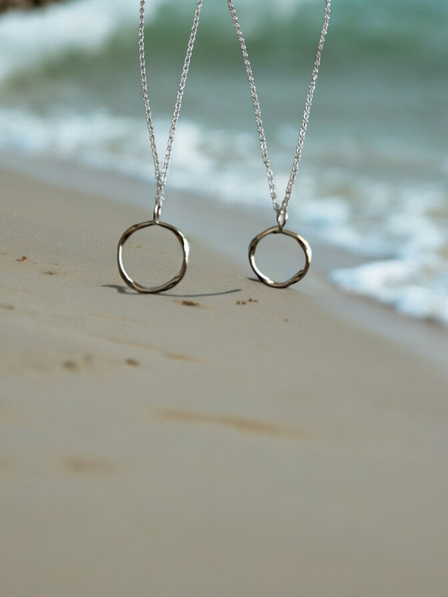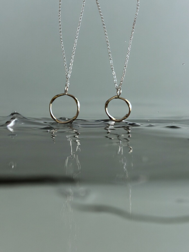 A handmade thin twisted circle pendant on a silver 18" fine chain. 2 sizes available.