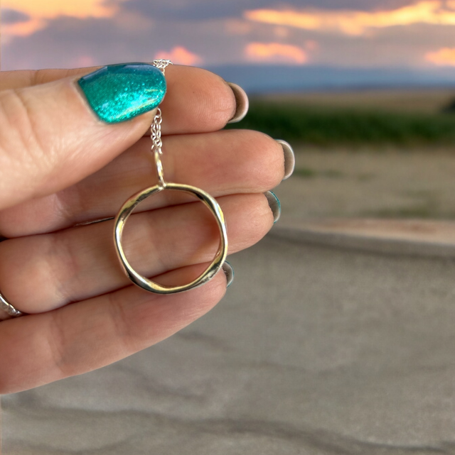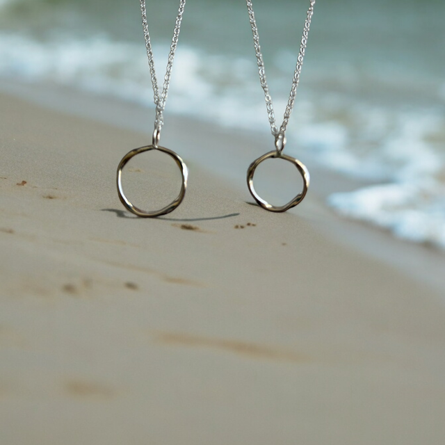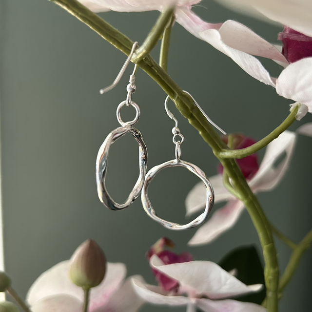 Handmade and hand twisted silver circle earrings on silver hooks and a matching pendant on a 18” silver chain combine to make this incredible and individual set. 2 sizes available.