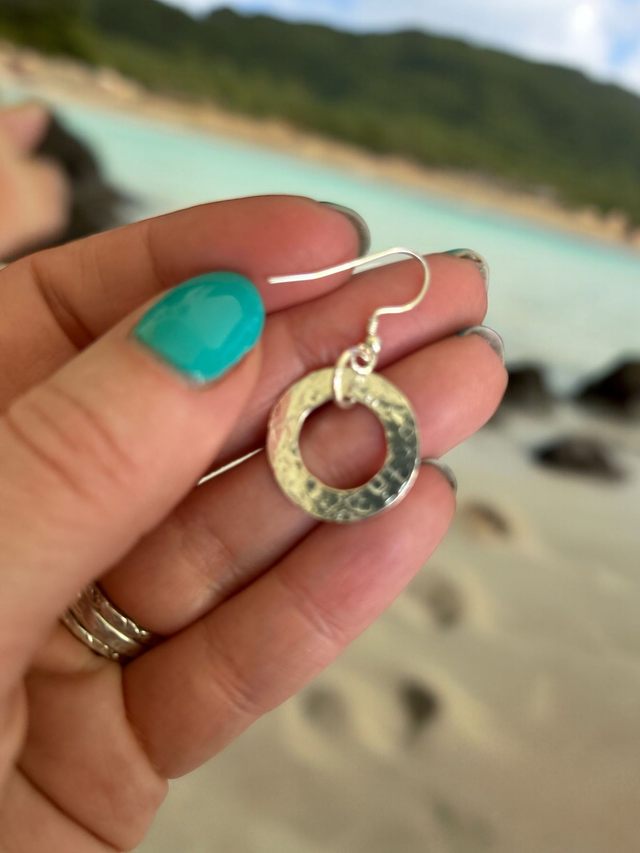 A pair of handmade 925 'washer' earrings with a beautiful hammered effect. The hooks are 925 silver.