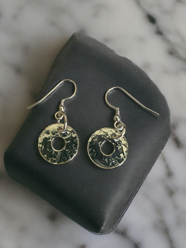 A pair of handmade 925 'washer' earrings with a beautiful hammered effect. The hooks are 925 silver.